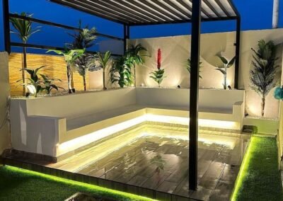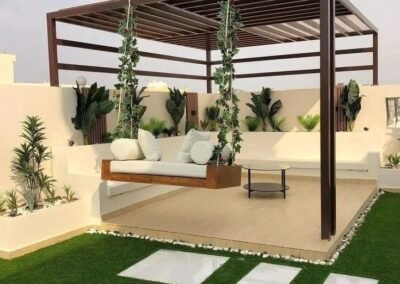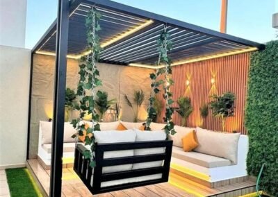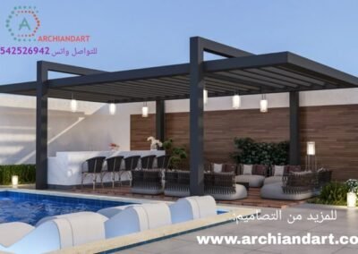 في دالكو، نصمم مساحات تنبض بالحياة. نقدم لكم أرقى تصاميم البرجولات الخشبية والمعدنية (قص ليزر) التي تحول حديقتك أو سطح منزلك إلى مكان مثالي للاجتماعات العائلية والاسترخاء. تتميز تصاميمنا بدمجها بين الظل المريح والمظهر الجمالي الساحر الذي يرفع من قيمة عقارك. لتصميم جلستك الخاصة: 0508019285